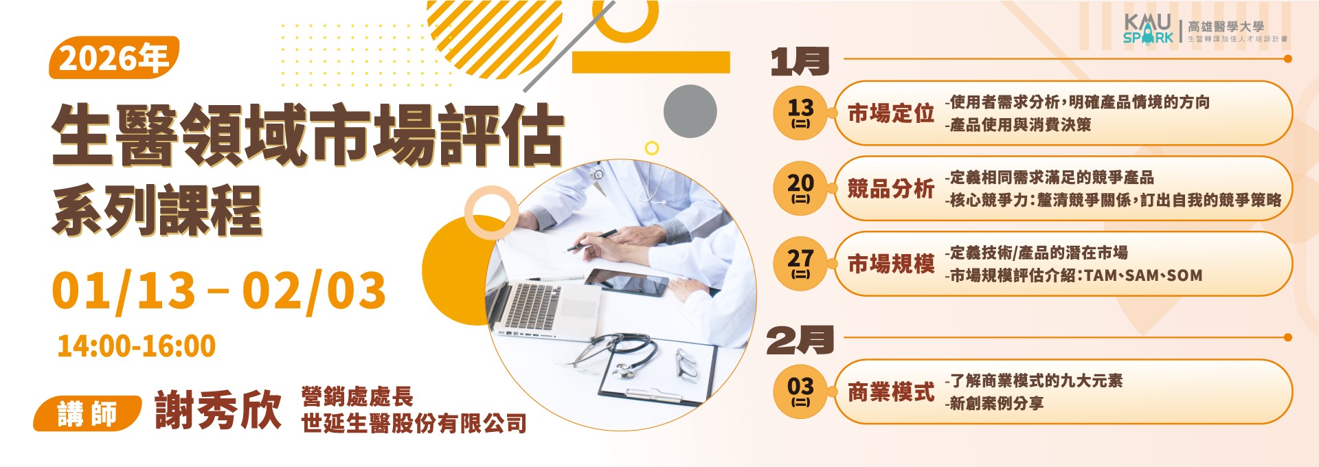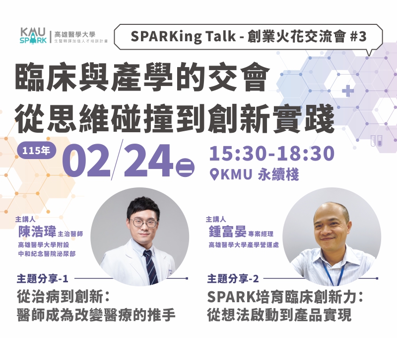 - 2025.08.18【徵案】2025年KMU SPARK生醫轉譯加值人才培訓